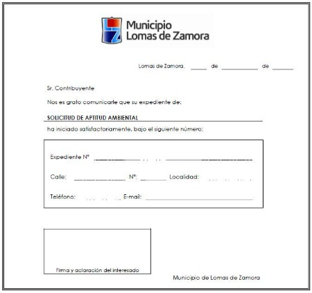 document type Comprobante de expediente de aptitud ambiental