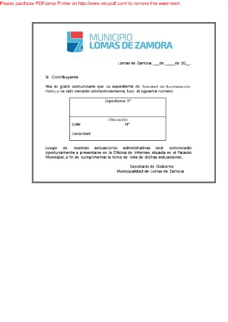 document type Comprobante de expediente de escrituración pública