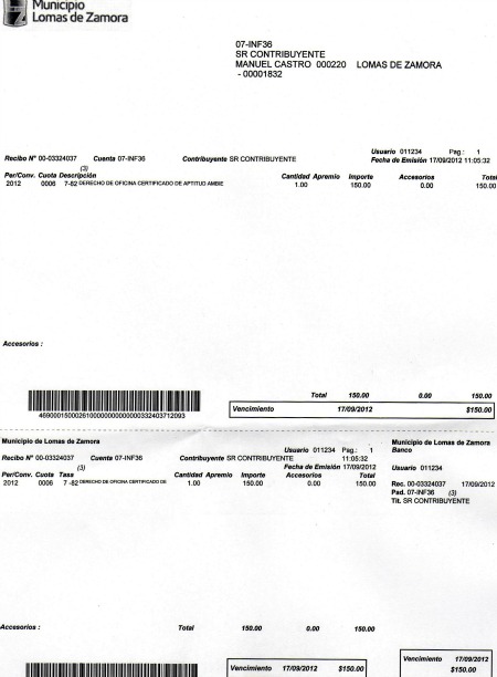 document type Recibo de aptitud ambiental pago