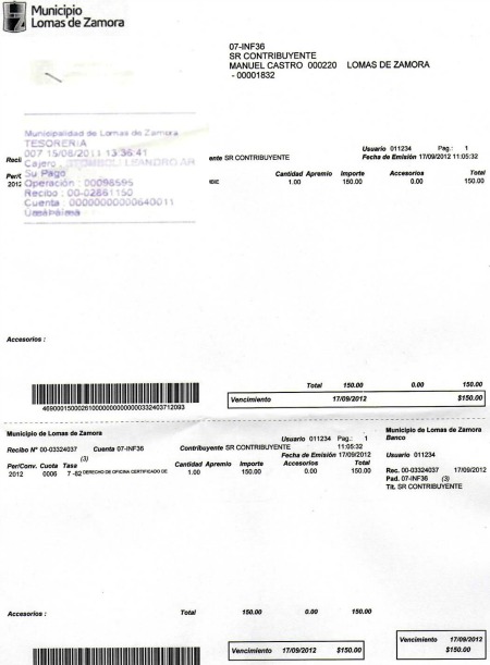 document type Recibo por derechos de oficina sellado