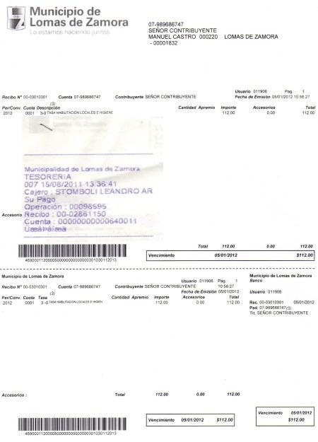 document type Recibo de pago de la tasa de inspección, seguridad e higiene