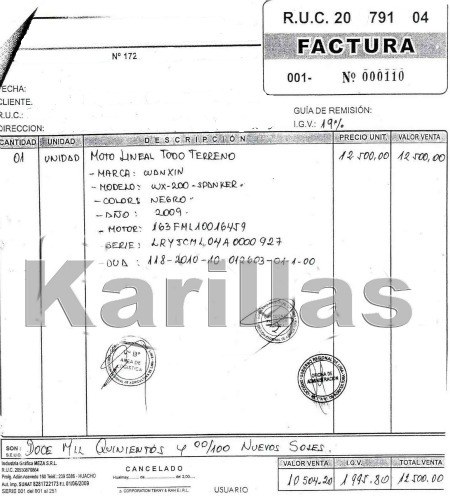 document type Comprobante de compra de motovehículo